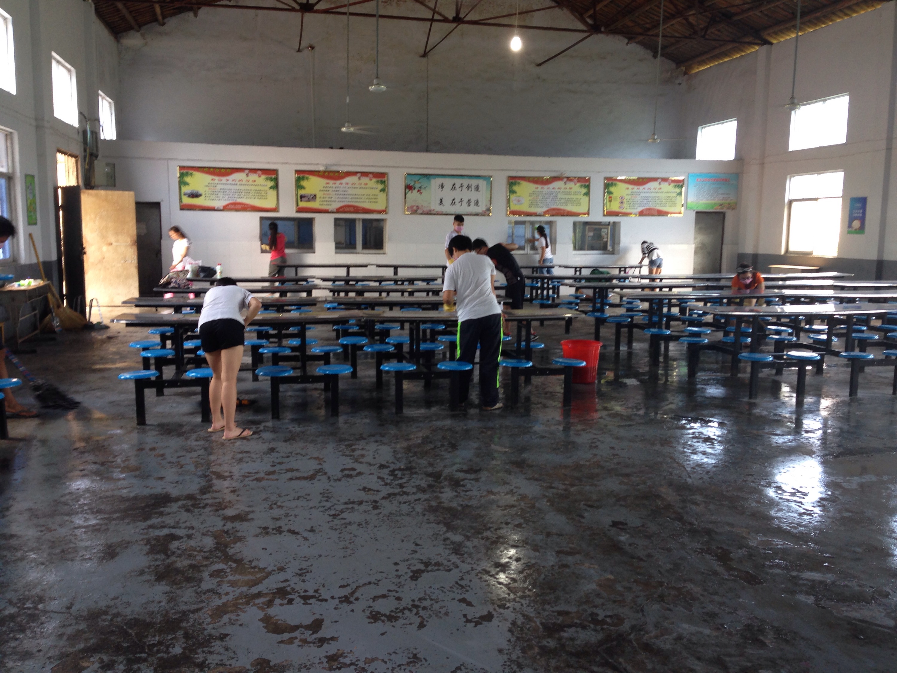 Every summer camp the first item of business is to mop and disinfect the floor of the cafeteria from mildew. High humidity and the tropical climate creates an ideal environment for mold to grow. Vigilant care must be taken to disinfect with cleaning chemicals that actually kill mold, a feat not easily accomplished, since the mildew embeds itself in the pocked concrete. We mopped with brooms made of cloth strips. Fortunately many hands makes for light work. We are at full compliment as a team — 38 people.