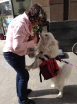 This time a side story was developing. Whenever we stop at vendor, we usually attract a small crowd. What do the Americans think is so good? What are they eating? A woman stops with her white dog. My wife is a dog lover. She starts interacting with the dog, talking to it and tussling with it. The owner is initially pleased, but soon the dog wants to play and talks back (dogs bark when they get excited and playful). The woman wanting to hush the dog decides to buy the vendor’s deep-fried chicken item on the menu. She offers the dog first bite, but is sniff and licks and decides “no.” The woman almost absent-mindedly puts the piece in her mouth, but checks herself at the last minute and asks the vendor for an additional skewer, one for her and one for the dog. The dog, however, is not interested in the food. It wants to play. She is having troubled handling the dog in one hand, her purse, and the food with skewers in the other. She becomes flustered and makes some remarks (in Chinese) to the vendor, which I guess is something like: “He doesn’t like your food. Hey, what kind of food are you selling? Is the meat bad? I want my money back.” He laughs and holds up both hand and replies (also in Chinese), and, again, I’m guessing something like, “No the meat’s good. All sales are final. I have lots of happy customers.” I think, however, that there must be lots of MSG in the seasoning and spices and the dog just wanted to eat natural.